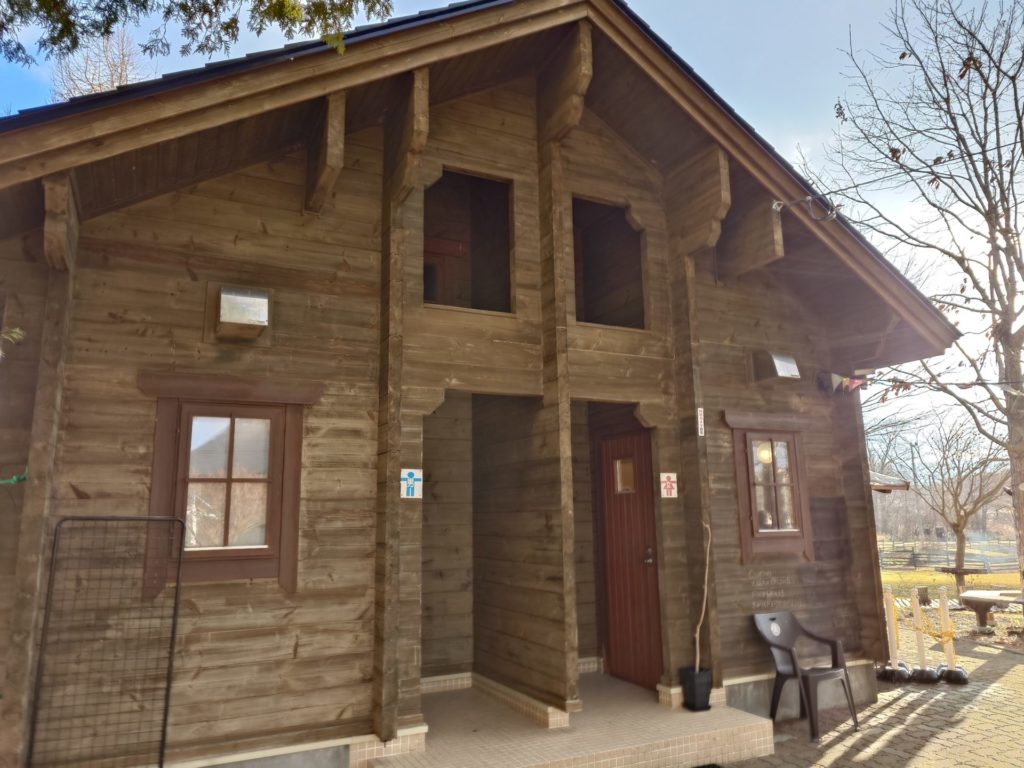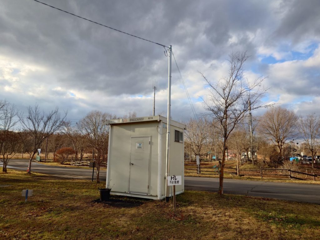 右手前にある白い建物が「トイレ」※男女兼用