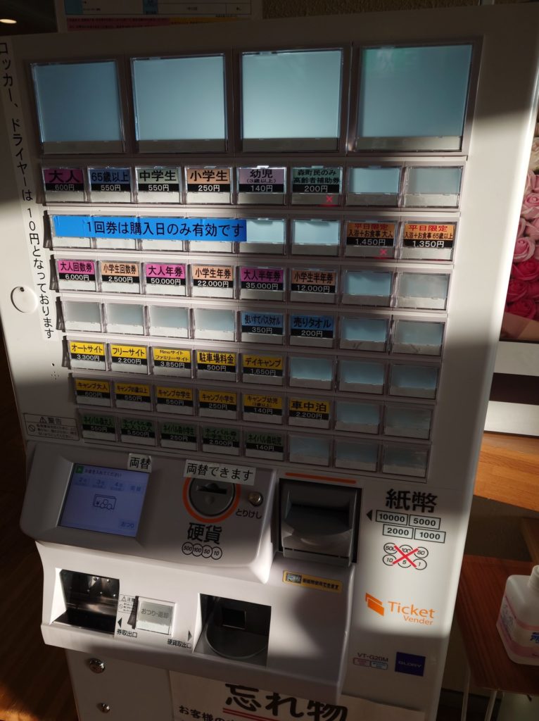 入場チケットはキャンプ場予約時にオーダーして受付でもらっても券売機で購入してもOK